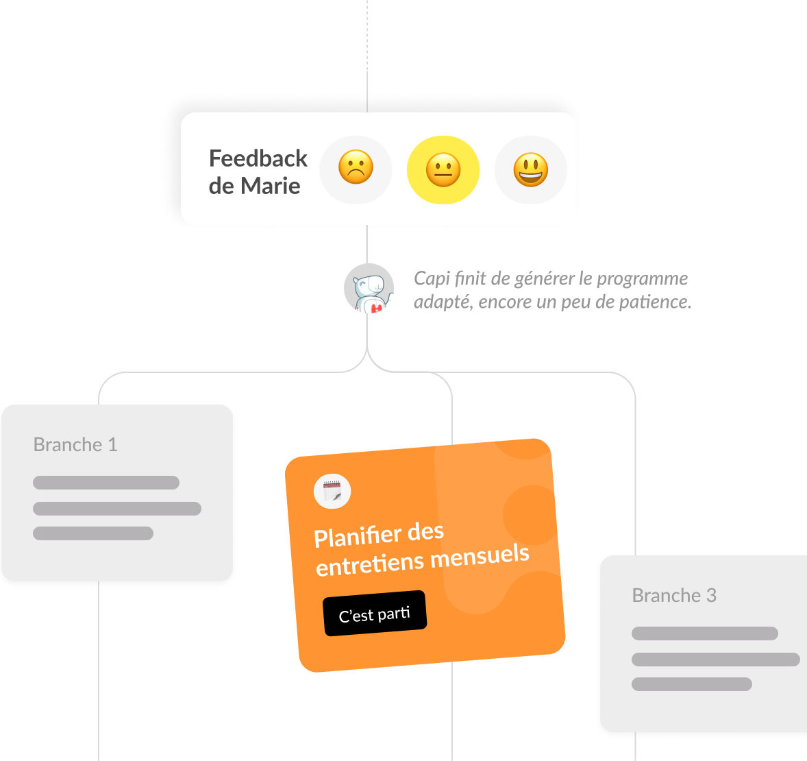 Capi génère : les étapes, contenus, emails, questionnaires, notifications, documents et les traductions.
